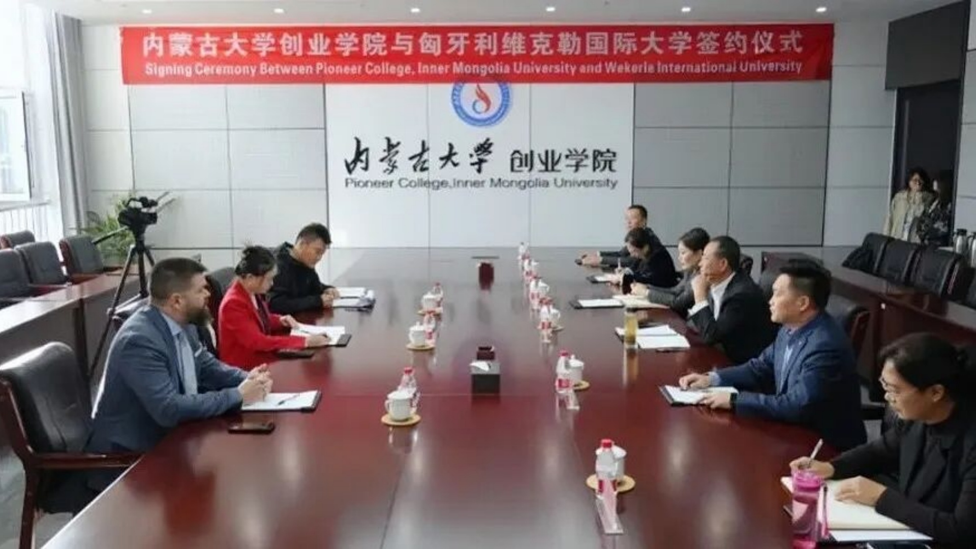 近日,维克勒国际大学执行董事马俊凯女士及副校长 Bognár Ferenc 博士到访内蒙古大学创业学院,受到了学院的热烈欢迎。 两校间合作的签约仪式在内蒙古大学创业学院举行。学院院长包广才教授、国际教育学院院长张淼等领导出席会议。